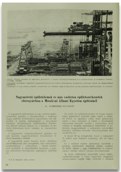 Nagyméretű épületelemek és más vasbeton épületszerkezetek előregyártása a Moszkvai Állami Egyetem építésénél